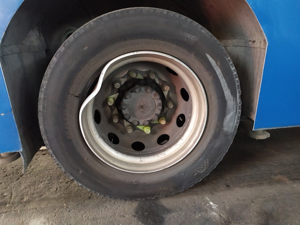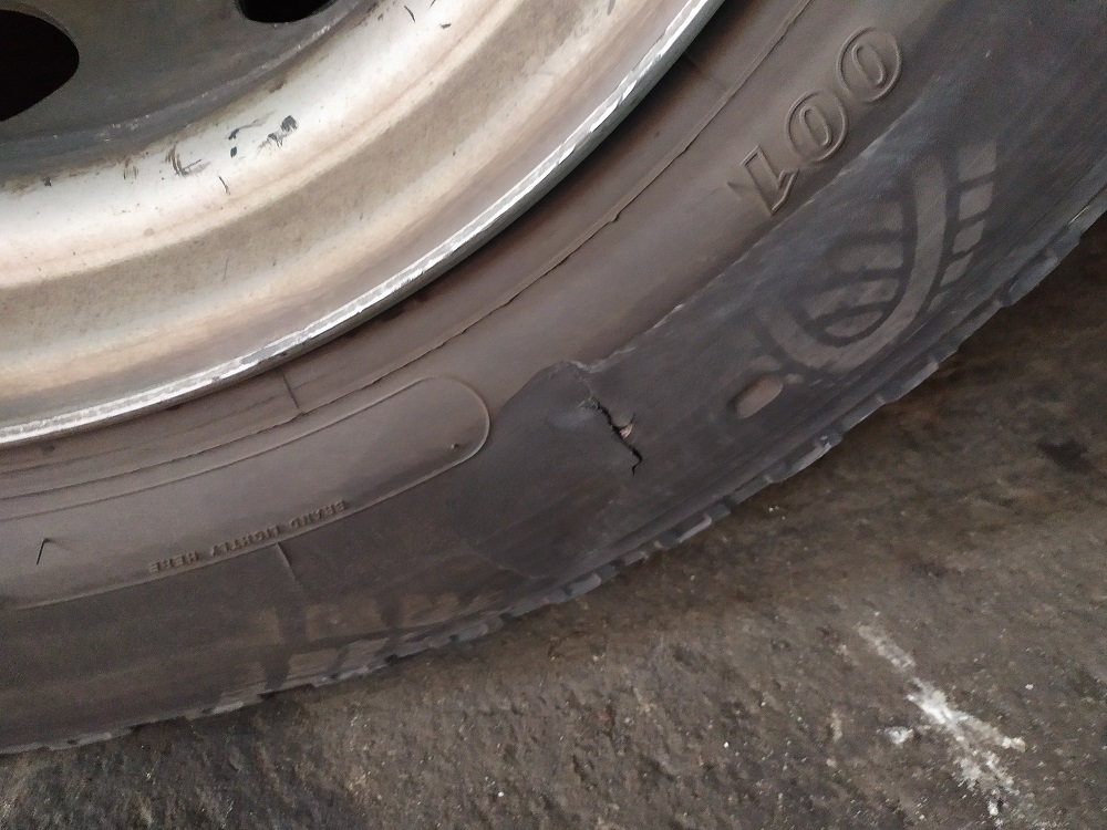 - Uszkodzenia boków opon w wyniku tarcia o niezliczoną ilość krawężników zatok przystankowych, źle wyprofilowanych ulic. Bardzo popularne krawężniki granitowe są w stanie skutecznie zniszczyć oponę. Nie jest możliwe w dużej flocie zapanowanie nad problemem niszczenia boków ogumienia. Bardzo szybko można osiągnąć zużycie graniczne oznaczane przez boczny wskaźnik. W normalnej sytuacji można odpowiednio wcześniej oponę przełożyć do wewnątrz lub stronami. Serwis weźmie za to dodatkową opłatę lub policzy za nową oponę.
